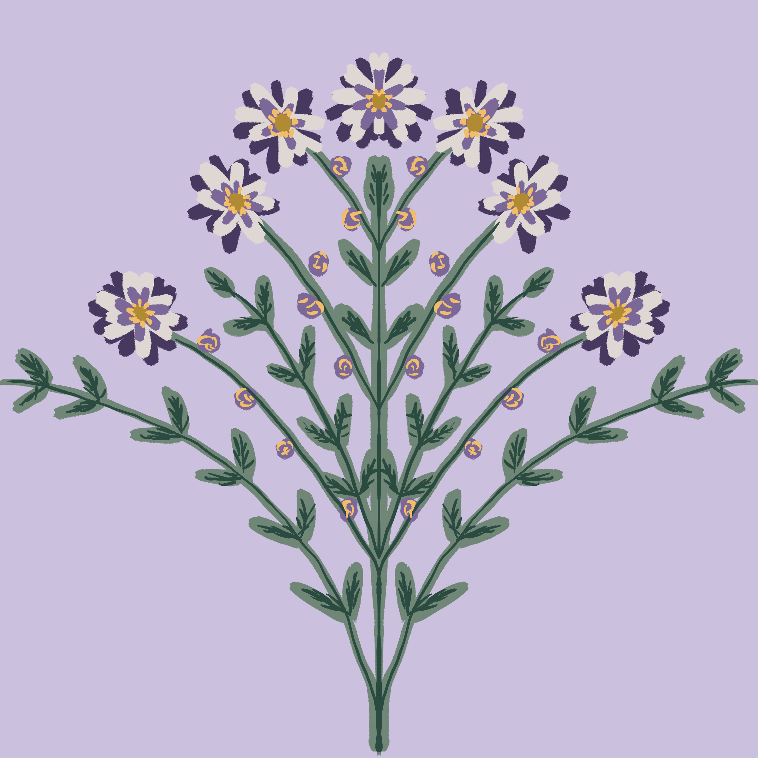 Delicate Botanical FloralA Mini Collection of delicate purple florals and botanicals. The main motif is inspired from the Blue Start Aster that flowers in early Autumn in Europe.