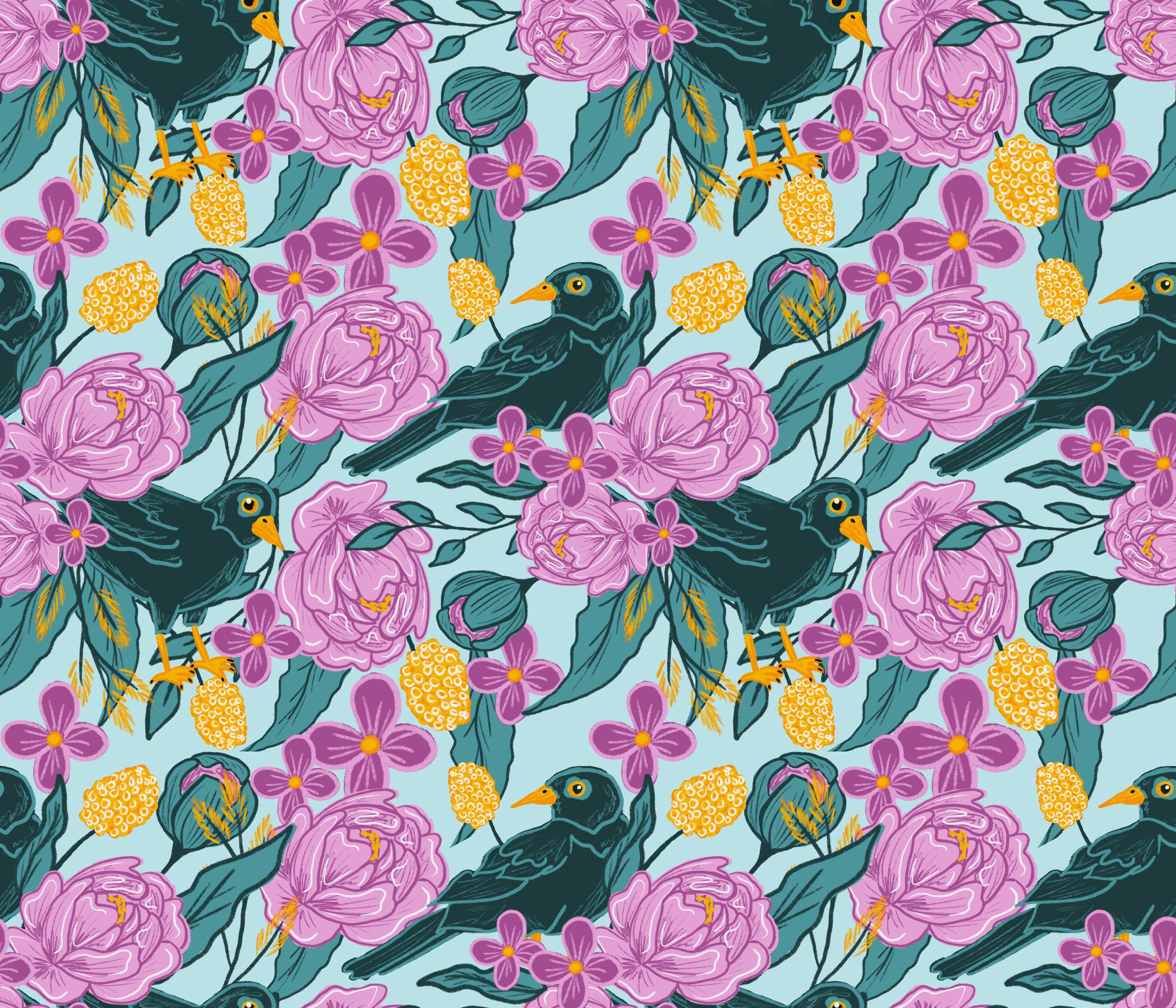 Bright Bold FunSay Hello to The Blackbird Collection. A series of repeat patterns and illustrations to brighten up your day.