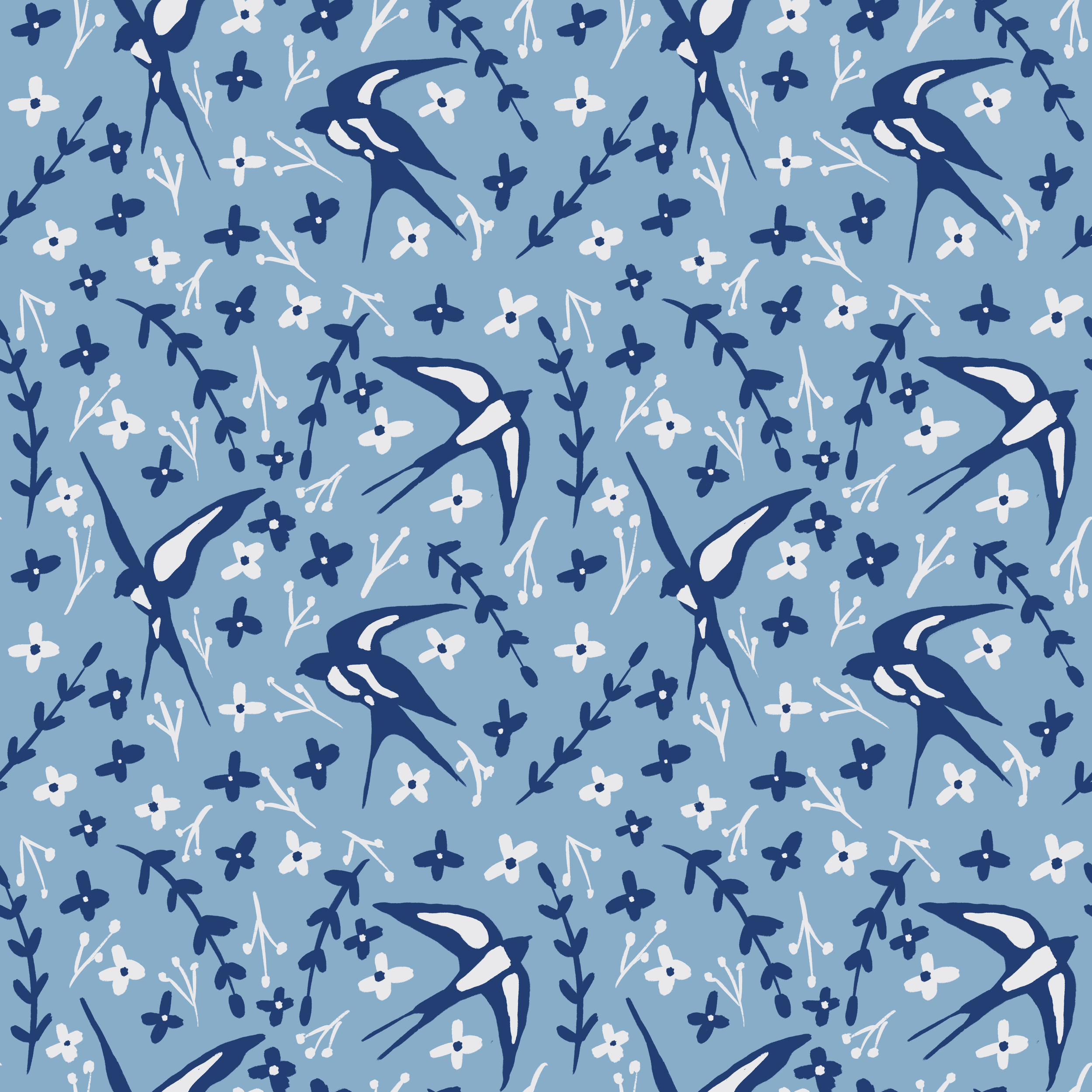 Delicate Sweet SwallowsThis mini collection is filled with delicate flying swallows and blue and white motifs.